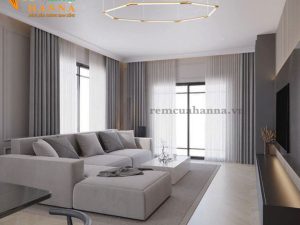 Rèm vải 2 lớp tone xám phù hợp với tone nội thất tạo ra một không gian nhẹ nhàng-sang trọng