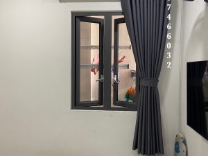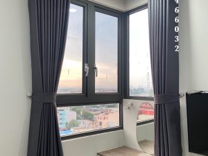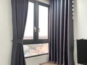 Hình 1.1: Rèm vải chống nắng tone xám đen cho phòng ngủ tại căn hộ của chị Hồng